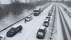 Vydatné sněžení už způsobilo desítky nehod, řada klíčových silnic stojí