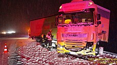 Komplikace na zasněžené D5. V kopcích uvázly kamiony, dálnice místy stojí
